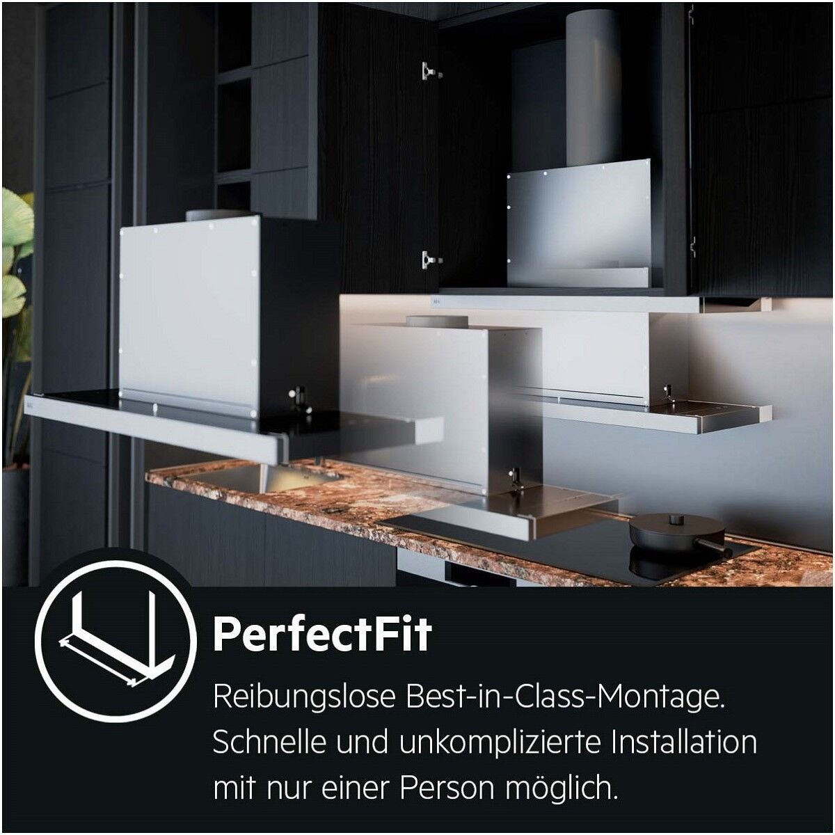 - Der kraftvolle Motor reinigt die Küchenluft schneller