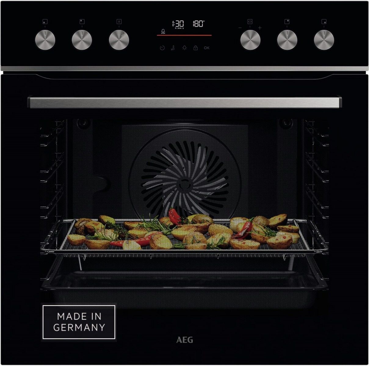 Multilevel Cooking ermöglicht durch einen zusätzlichen Heizring gleichmäßiges Backen auf bis zu drei Ebenen. Die Heißluft-Funktion verteilt die Hitze gleichmäßig im Garraum, sodass deine Gerichte auf jeder Ebene gleichzeitig dasselbe Garergebnis erzielen.