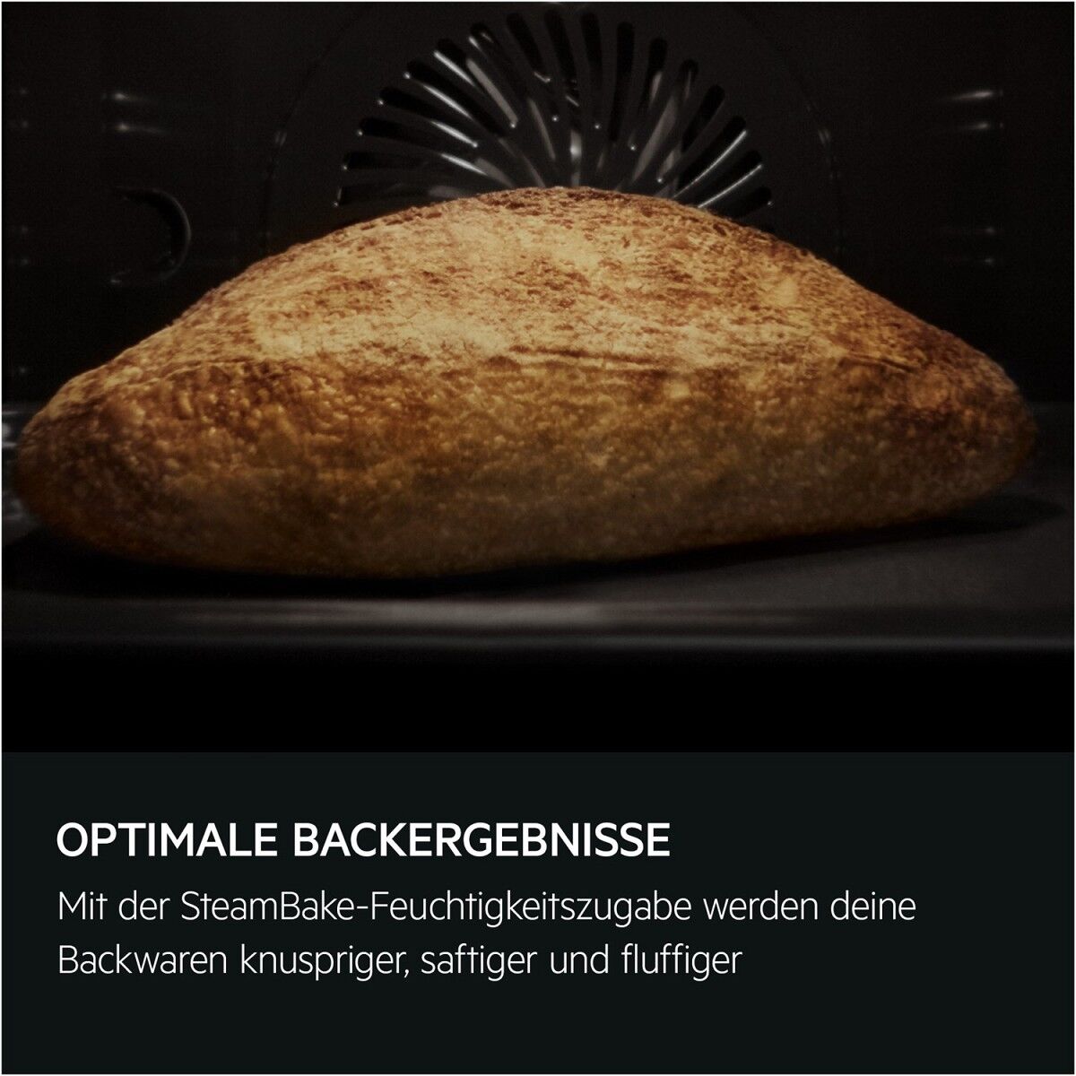 Mit den AEG SurroundCook® Backöfen der Serie 5000 mit SteamBake-Funktion gelingen dir Backwaren immer perfekt - außen gleichmäßig gebräunt, innen locker und fluffig. Durch Zugabe von Wasser in die beheizte Vertiefung füllt sich der Garraum mit Luftfeuchtigkeit und erzielt so beste Backergebnisse.