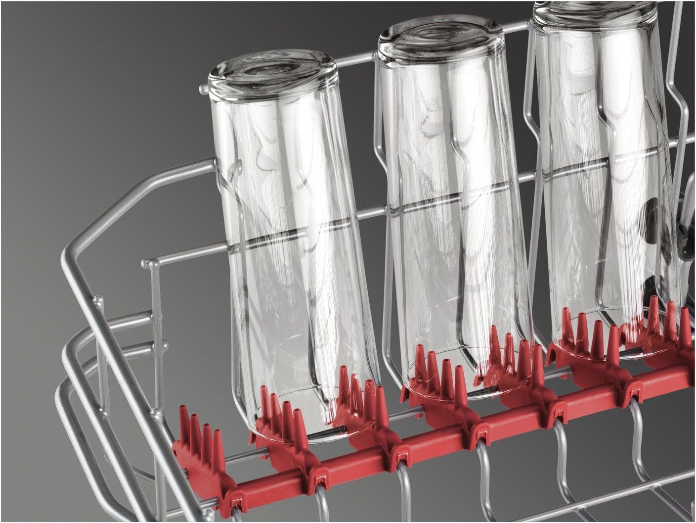 SoftSpikes & SoftGrips: Sicherer Halt für deine Gläser.Die Glasstiele können einfach in die patentierten SoftGrip-Klammern eingeklipst werden. Und die im Oberkorb liegenden gummierten SoftSpikes lassen kein Glas verrutschen. Das schützt den Glasrand und macht ein Umkippen deiner Gläser nahezu unmöglich.