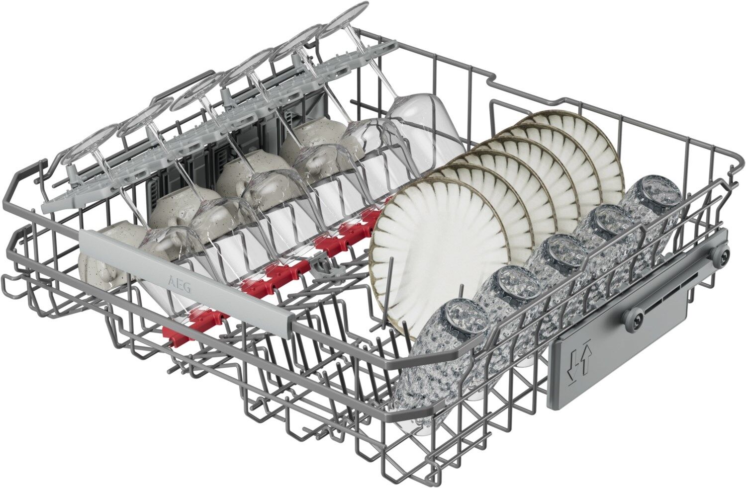 AEG Geschirrspüler der Serie 7000 verfügen über eine hohe Wassereffizienz und effektive Reinigungsleistung bei einem geringen Wasserverbrauch von nur 8,4 Litern dank des neuen Wassersystems. Die flexiblen Körbe mit klappbaren Bereichen sorgen für ein müheloses Beladen.