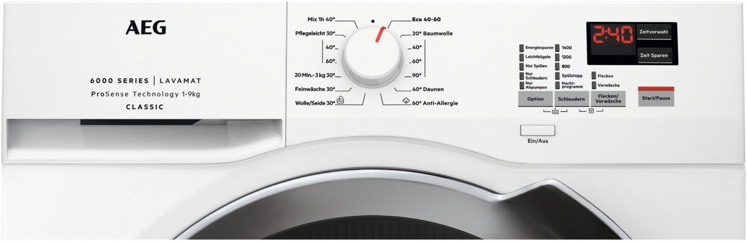 Die AEG Waschmaschinen der Serie 6000 passen mit der ProSense®-Technologie die Waschdauer und den Energieverbrauch immer an die Menge der Wäsche an – egal ob große oder kleine Beladungen. Dadurch wird Ihre Kleidung geschont, sowie Energie, Wasser und Zeit gespart.