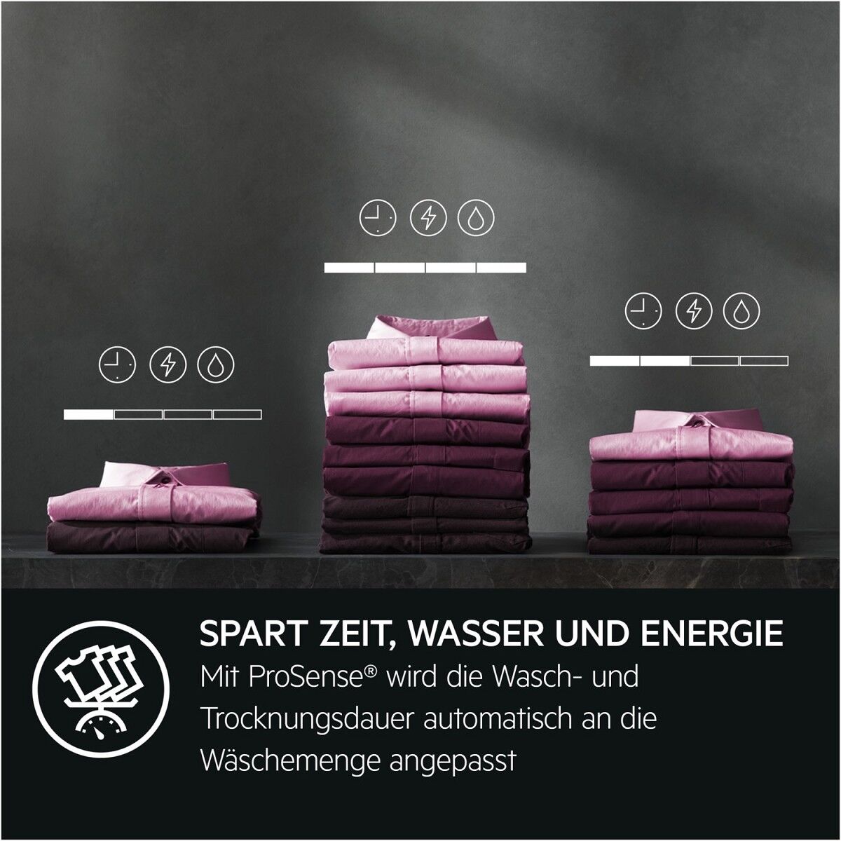 Die Sensoren der ProSense® Mengenautomatik ermitteln automatisch die Wäschemenge für einen maßgeschneiderten Wasch- und Trockenzyklus. Zeit-, Wasser- und Energieverbrauch werden gesenkt. So erhält deine Wäsche exakt die richtige Pflege bei jedem Waschvorgang. *Interner Test zum Zeit-, Wasser- und Energiebedarf eines ProSense®-30 °C-Baumwollwaschgangs bei maximaler Ladung im Vergleich zu einer 1-kg-Ladung.