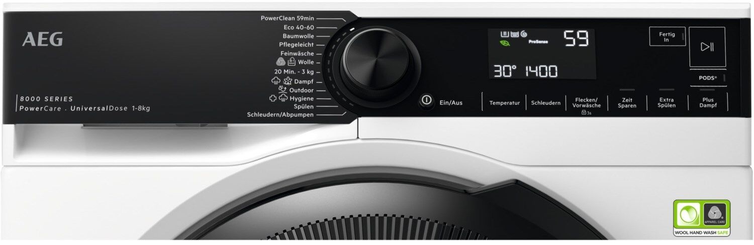 Die 8000 PowerCare Waschmaschinen verwenden die einzigartige PowerCare-Technologie, um Waschmittel und Weichspüler effektiv mit Wasser vorzumischen und gleichmäßig auf deiner Kleidung zu verteilen. Aktivierende Waschkraft bereits bei 30 °C für überragende Waschergebnisse in weniger als einer Stunde.
