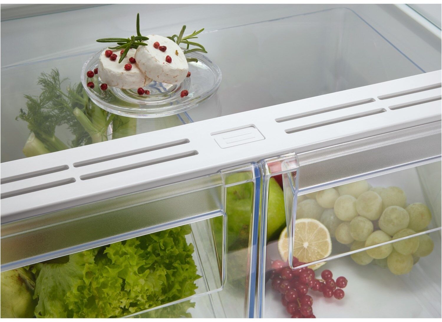 Die Gemüseschublade dieses Kühlschranks ist mit speziellen Lüftungsöffnungen ausgestattet, mit denen du den Luftfeuchtigkeitsgrad im Inneren genau steuern kannst. Obst und Gemüse werden mit genau der richtigen Luftfeuchtigkeit geschützt und bleiben lange frisch und saftig.