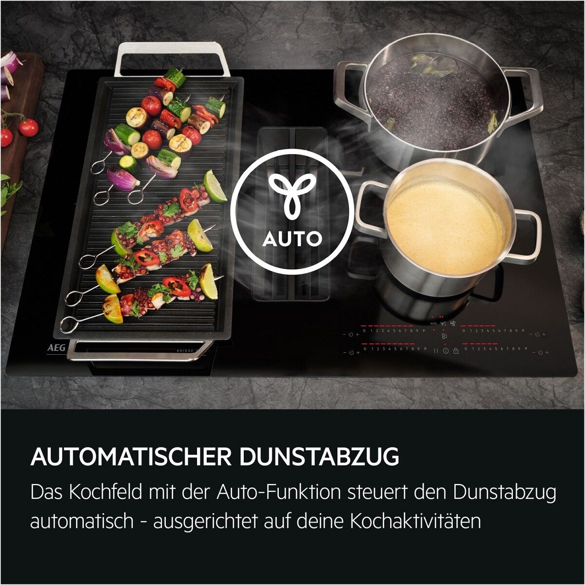 Auto-Funktion: Automatische Steuerung des DunstabzugsDank der Auto-Funktion wird Kochen spürbar komfortabler. Das Kochfeld übernimmt beim Aktivieren die Steuerung vom Dunstabzug – vollautomatisch und ideal angepasst an jede Kochaktion.