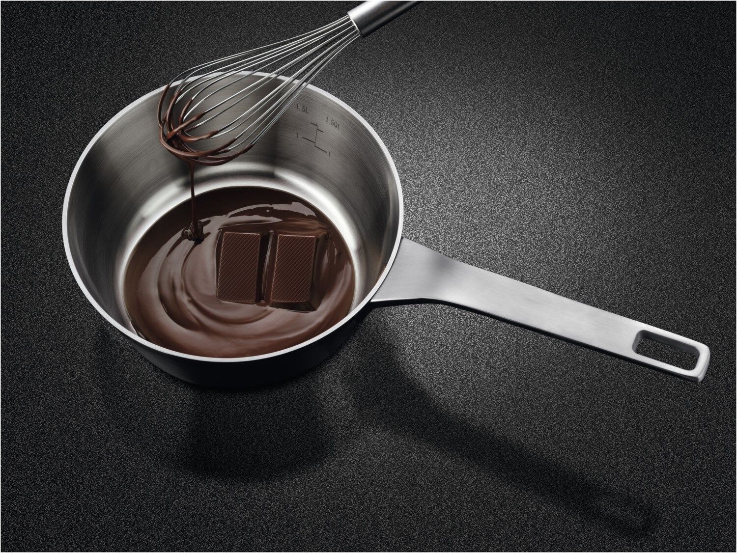 SaphirMatt-Oberfläche: Elegantes Design. Überragender Schutz vor Kratzern. Die einzigartige Oberflächentextur des SaphirMatt- Keramikglases lässt dein Kochfeld länger neu aussehen. Die elegante schwarze, matte Oberfläche bietet einen herausragenden Schutz vor Kratzern verglichen mit AEG Standard-Glaskeramikkochfeldern und ist resistent gegen Fingerabdrücke und Flecken.