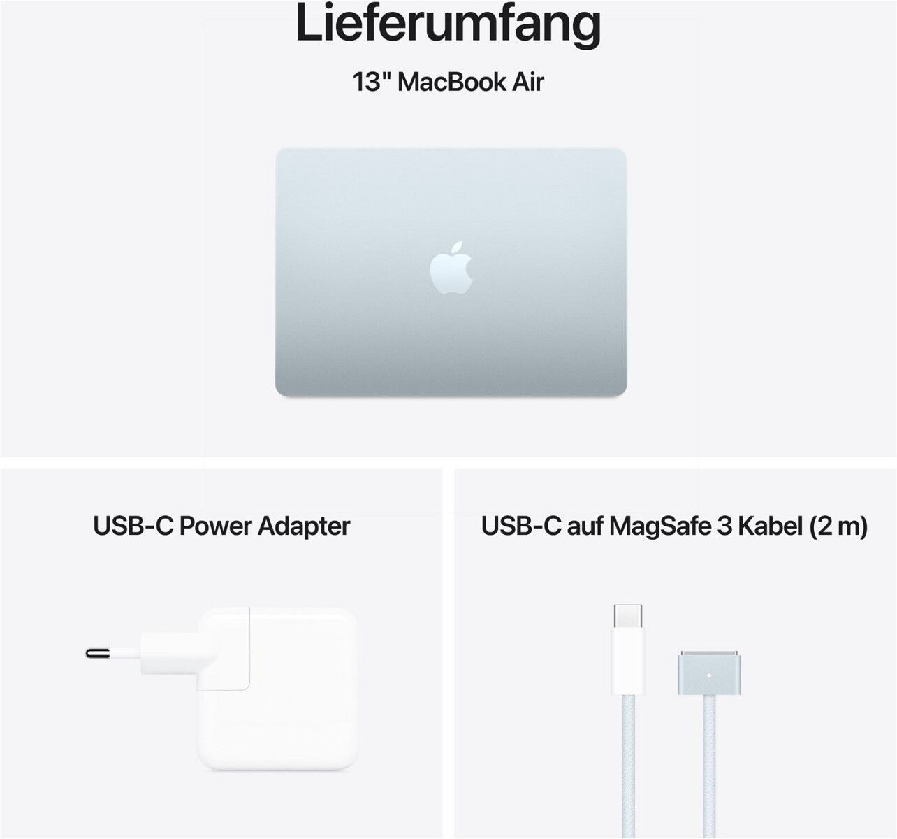 ³ Das Display des 13" MacBook Air hat oben gerundete Ecken. Als Standard-Rechteck gemessen hat das Display eine Diagonale von 13,6" (34,46 cm). Der tatsächlich sichtbare Displaybereich ist kleiner.