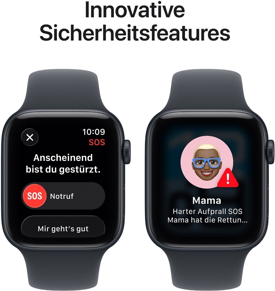 ⁹ Wenn die Apple Watch über „Apple Watch für deine Kinder“ eingerichtet wird, sind nicht alle Funktionen verfügbar. Weitere Informationen gibt es unter support.apple.com/de-de/109036. Für Mobilfunkdienste ist ein Mobilfunktarif erforderlich. Informationen über teilnehmende Mobilfunkanbieter und die Verfügbarkeit gibt es unter apple.com/de/watch/cellular.