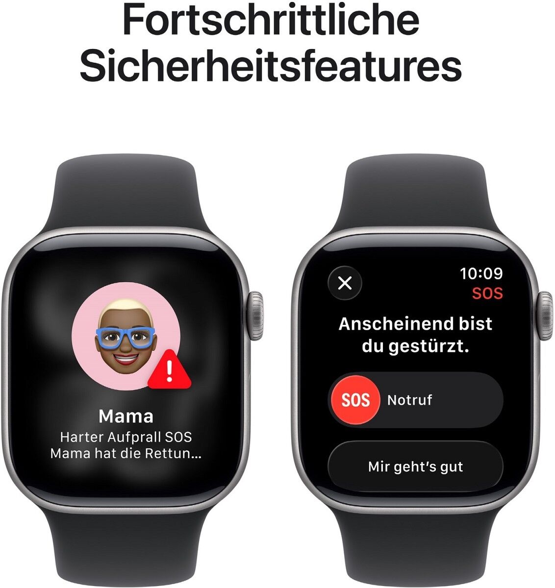 ² Datentarif erforderlich. 5G ist in ausgewählten Ländern und über ausgewählte Anbieter verfügbar. Die Geschwindigkeit kann je nach Standort und Anbieter variieren. Nähere Informationen zur 5G Unterstützung gibt es beim jeweiligen Mobilfunkanbieter und auf apple.com/de/watch/cellular.