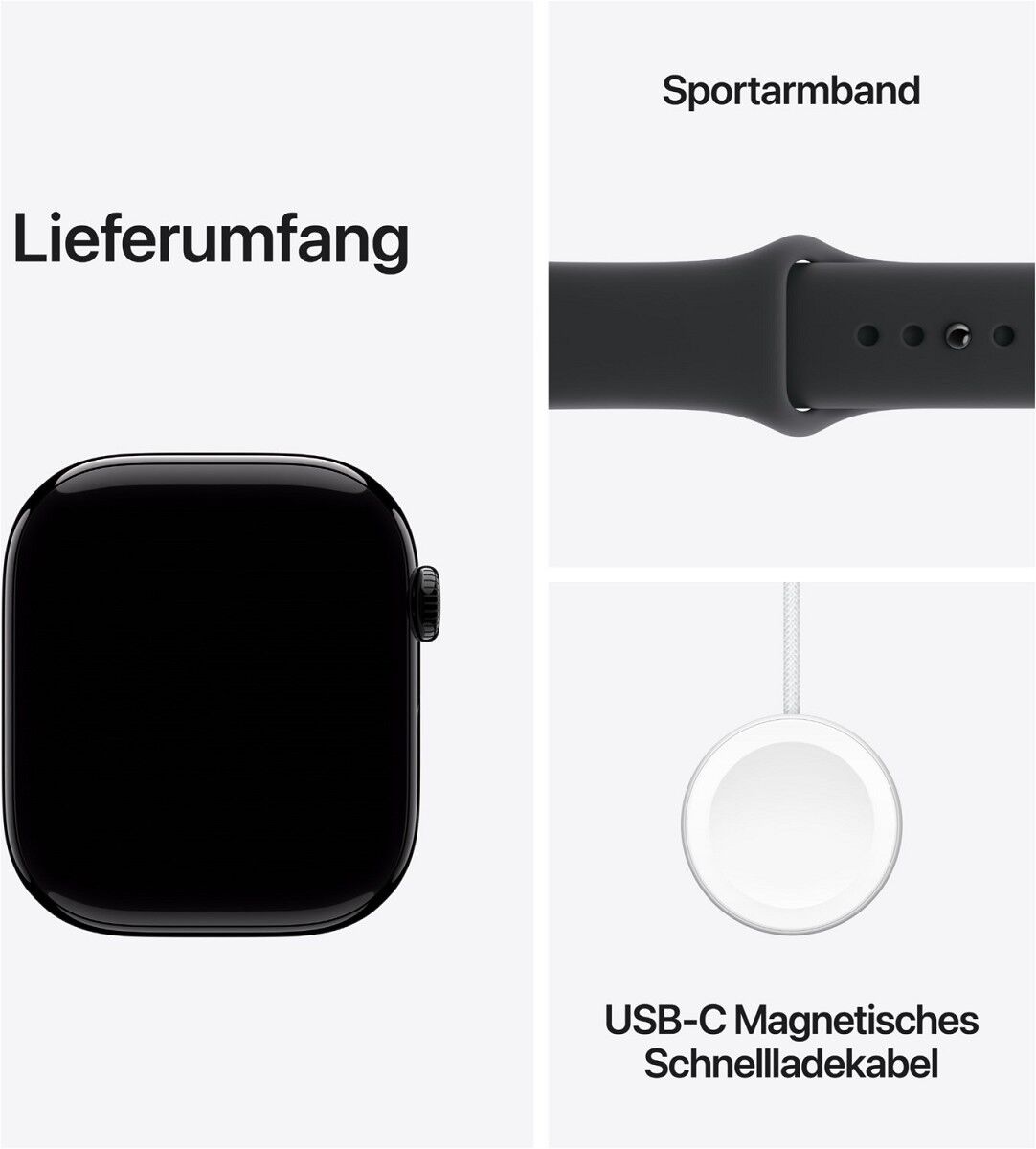 ¹⁰ Schnelles Laden ist kompatibel mit der Apple Watch Series 7 und neuer, allen Apple Watch Ultra Modellen und der Apple Watch SE 3.