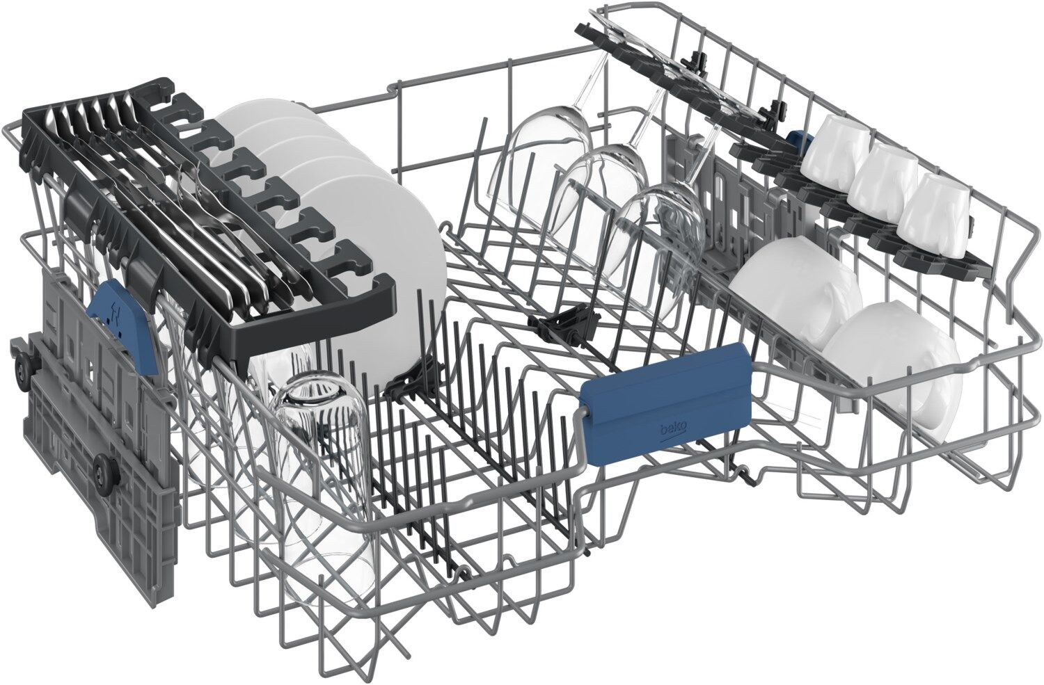 Der Besteckkorb ist eine clevere Erfindung, aber er ist oft im Weg, wenn Sie einen großen Topf im unteren Korb unterbringen wollen. Mit dem verschiebbaren Besteckkorb wird dieses Problem gelöst, da er frei nach rechts und links beweglich ist, sodass Platz für diese größere Gegenstände geschaffen wird.