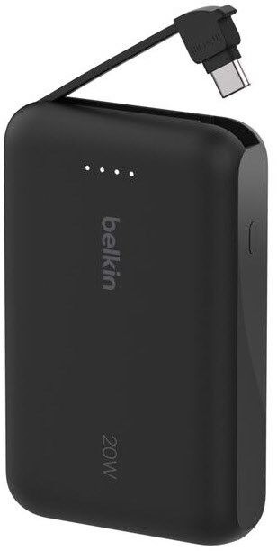 Laden Sie Geräte mit dieser leichten 10K-Powerbank§ mit bis zu 20 W auf. Da das USB-C®-Kabel integriert ist, können Sie unterwegs bequem laden, ohne ein zusätzliches Kabel mitnehmen zu müssen. Dank des USB-C-Anschlusses kann gleichzeitig ein zweites Gerät aufgeladen werden.