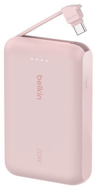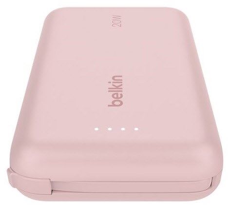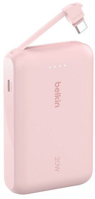 Das integrierte USB-C-Kabel lässt sich an den zweiten 20-W-USB-C-Port anschließen, sodass Sie zwei Geräte gleichzeitig aufladen können, auf die 15 W Leistung verteilt werden. Sorgen Sie dafür, dass Ihr Smartphone und Tablet immer und überall genug Energie haben.
