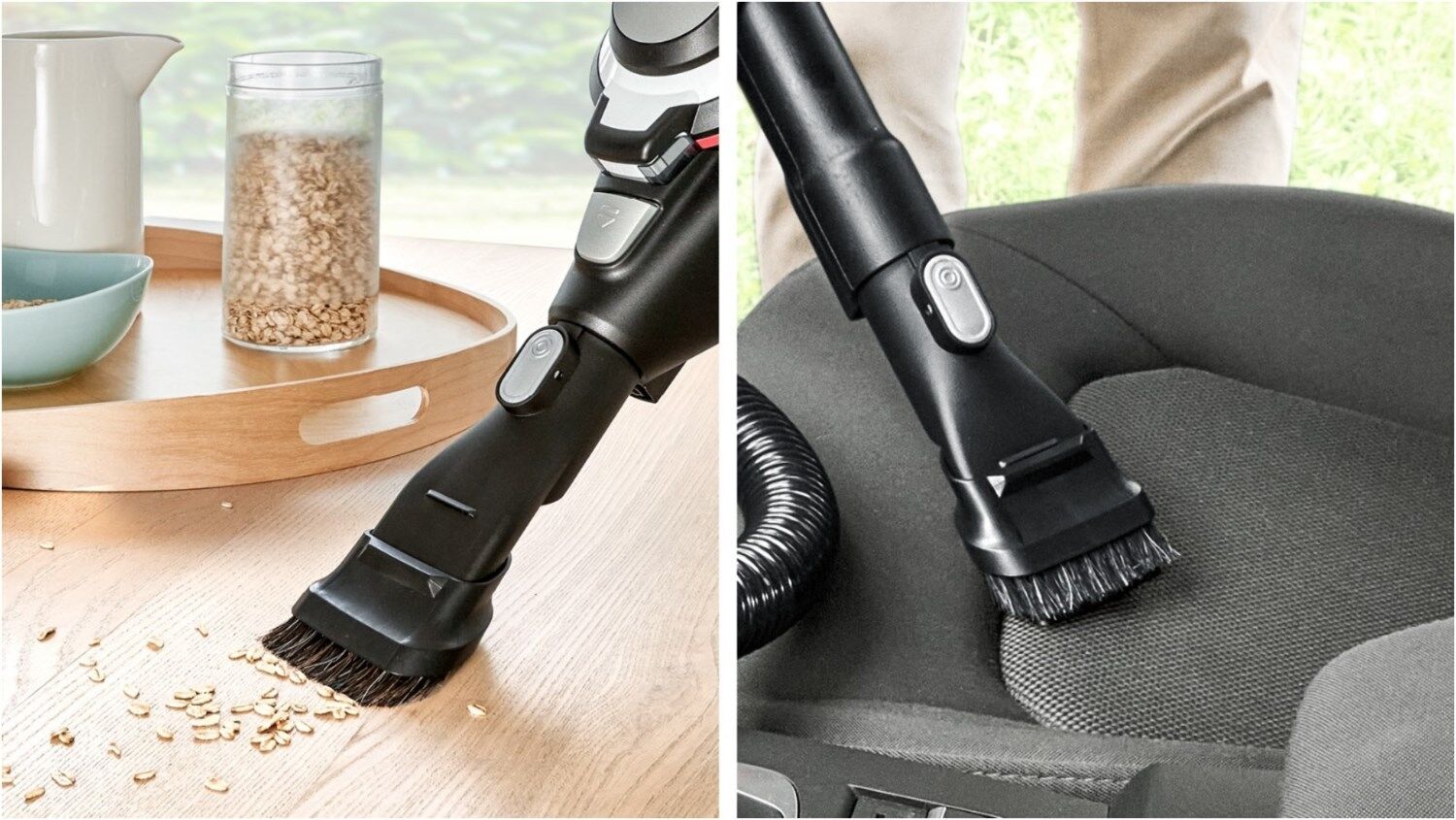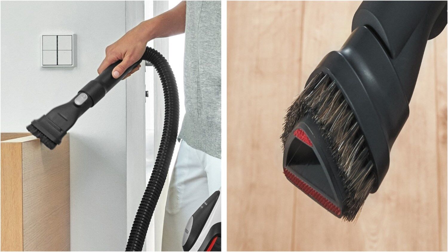 - 1 Zubehör – 2 Funktionen: Die Polsterdüse ist ideal für hartnäckigen Schmutz und Staub, die weichen Borsten eignen sich perfekt für empfindliche Oberflächen und Möbel