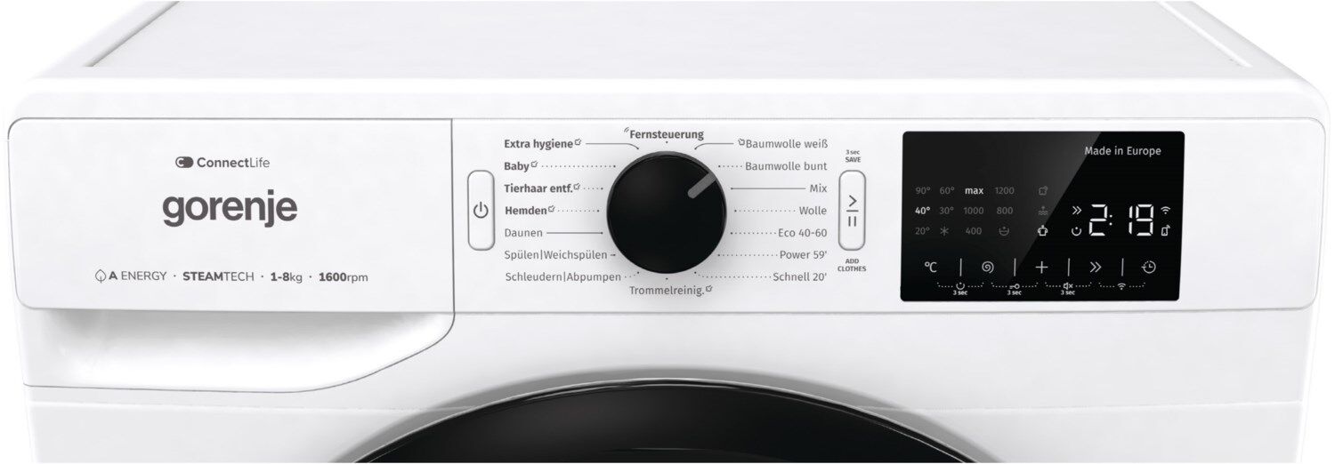 Die benutzerfreundliche Oberfläche mit zentral positioniertem Auswahlknopf ermöglicht es Ihnen, mit dem Waschen in nur 3 einfachen Schritten zu beginnen; Schalten Sie die Waschmaschine ein, wählen Sie das Programm und drücken Sie Start! Ohne Untermenüs zur Auswahl zusätzlicher Funktionen und Einstellungen, aber Sie haben die Freiheit, die Einstellungen auf der großen Touch-Oberfläche vorzunehmen, sodass Sie sicher sein können, dass Ihre Kleidungsstücke so gewaschen werden, wie Sie es möchten.