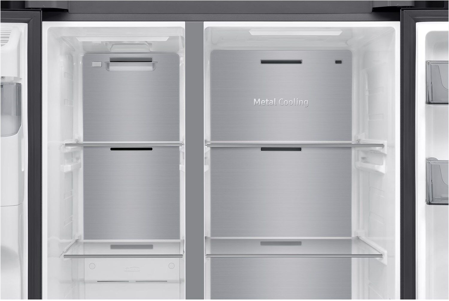 Metal Cooling behält die passende Temperatur im Kühlschrank, damit Lebensmittel auch bei häufigem Türöffnen frisch bleiben. So können Temperaturschwankungen im Innenraum reduziert werden und Lebensmittel frisch bleiben. Metal Cooling ist leicht zu reinigen verleiht dem Kühlschrank einen Profi-Look.