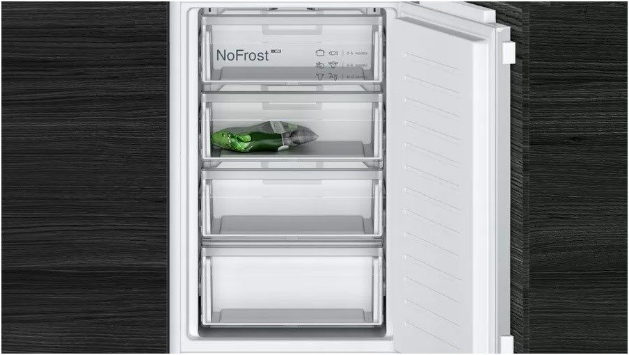 Das Gefrierfach abtauen, damit das Gefriergut einwandfrei bleibt und Ihr Gerät energieeffizient läuft? Das brauchen Sie jetzt nicht mehr. Die noFrost-Technologie eliminiert Feuchtigkeit und hält die Luft trocken, sodass sich kein Eis an den Seiten oder auf den Lebensmitteln bilden kann. Dadurch sparen Sie nicht nur Aufwand, sondern auch Energie, weil ein frostfreies Gefrierfach einfach effizienter ist.